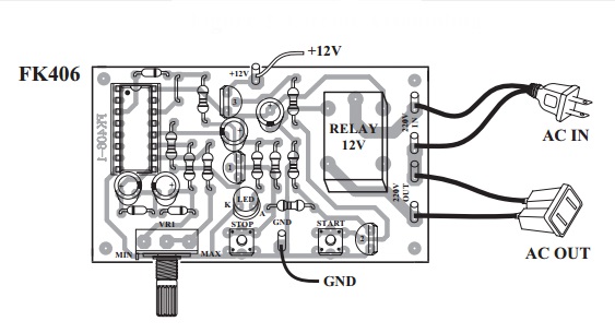 The timer switch kit can be connected to any load such as an appliance which is 220 volt and not more than 300 watt, to set its turning off time from 0-3 hours related to adjustment of the potentiometer.