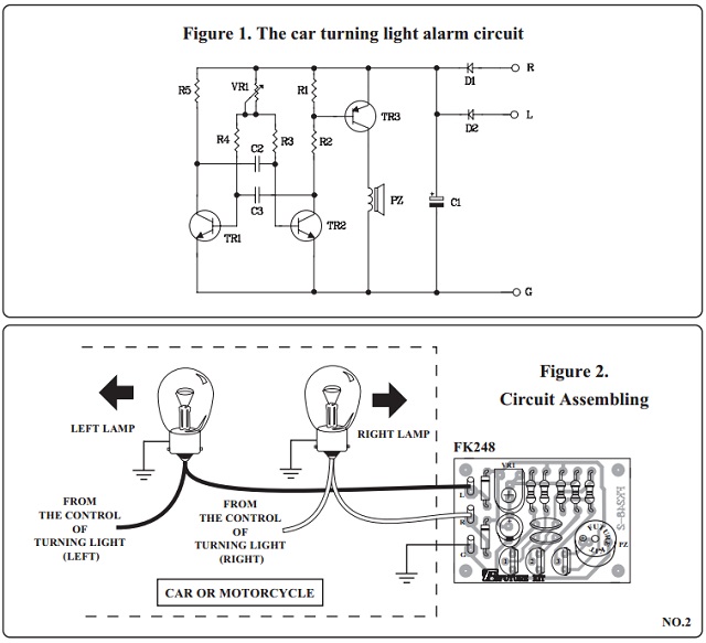 Car turning signal audio warning kit.